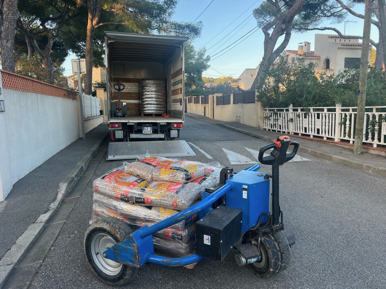 Nous avons récemment effectué une livraison à Sausset-les-Pins, où notre équipe a livré deux palettes de granulés pour poêle à pellets. Grâce à notre transpalette électrique tout-terrain, nous avons pu rouler sur le gravier et accéder au plus près de l’endroit de stockage. Cela a permis au client d’éviter les efforts de manutention et de faciliter la manutention de rangement des palettes de granulés au plus près du lieu de stockage.
